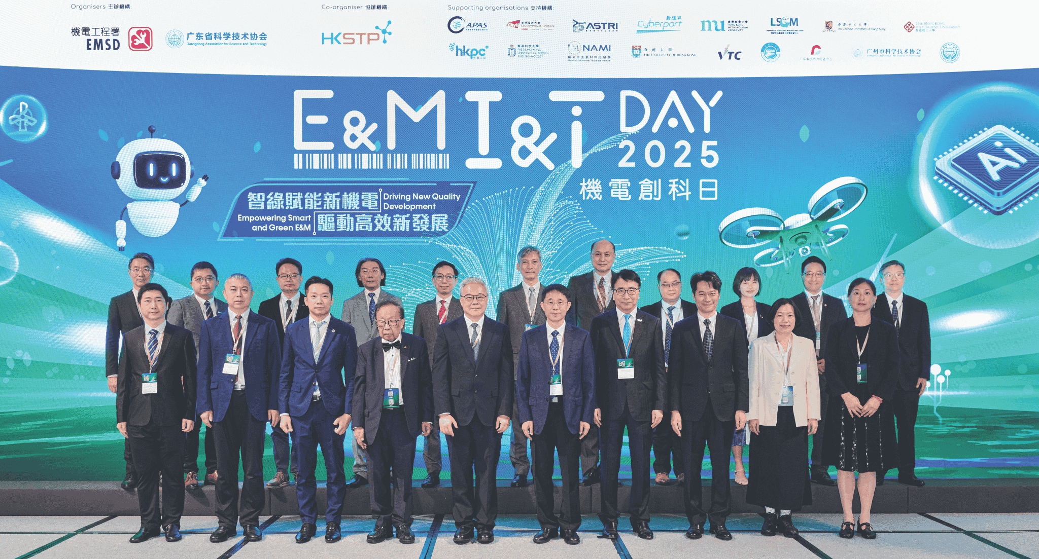 Green innovation is a vital force in driving China and Hong Kong towards carbon neutrality and energy efficiency. The E&M Innovation and Technology (I&T) Day 2025, jointly organised by the Electrical and Mechanical Services Department (EMSD) and the Guangdong Association for Science and Technology, with the Hong Kong Science and Technology Parks Corporation as the co-organiser, was successfully held on 26 June at the Hong Kong Science Park. The hybrid event brought together 28 Hong Kong and Mainland exhibitors, attracting over 400 participants from the electrical and mechanical (E&M) trade, I&T industry, tertiary and research institutions in Hong Kong and other Greater Bay Area (GBA) cities. Various client departments participated, and the online live stream drew more than 100 000 viewers, receiving an enthusiastic response.